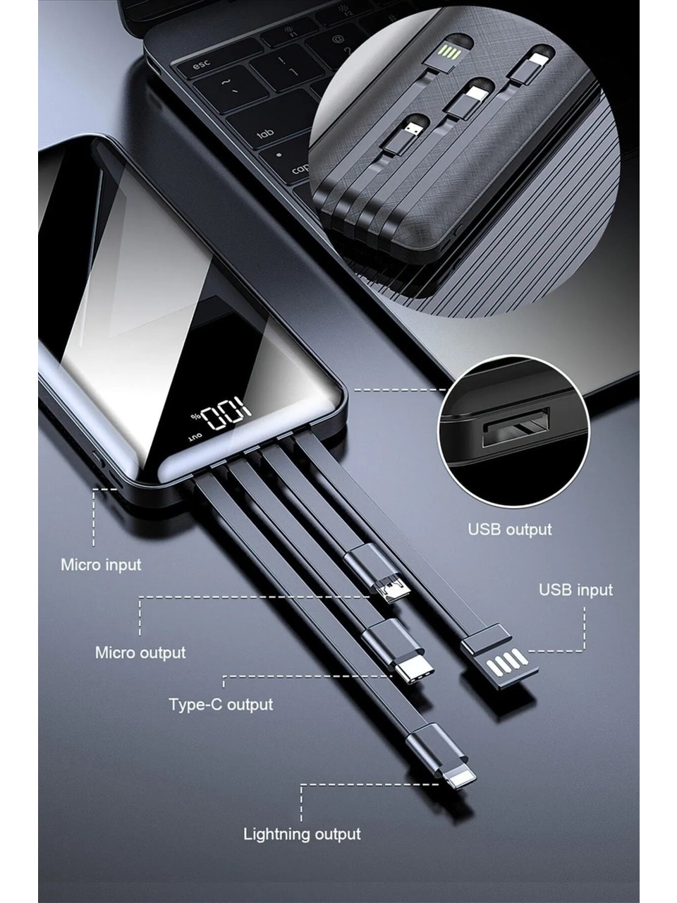 Intouch 10.000 mAh Prime Dijital Göstergeli Dahili Çoklu Kablolu Powerbank hareket halindeyken mobil ürünlerini kaliteli bir şarj aleti ile şarj etmek isteyen kullanıcıların ihtiyaçlarına hitap ediyor. Taşınabilirlik ve mini tasarım özelliklerini birlikte sunan ürünümüz özel tasarımı sayesinde daha kolay kavranabiliyor.